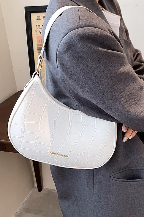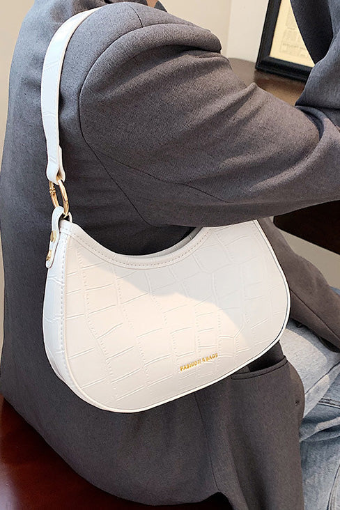 Its soft moon shape keeps the structure lightweight, with just enough capacity for essentials like your phone, lipstick, and card holder. The adjustable slim strap supports both underarm and shoulder wear. Featuring a top magnetic closure and matte croc texture, it’s a versatile everyday piece ideal for work, dates, and casual outings.